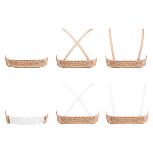 - Convertible bra comes with 1 bra, 2 color shoulder straps, 2 clear shoulder straps, 1 color back band and 1 clear back strap. So it converts 6 ways for versatility– strapless traditional crisscross halter backless and one shoulder for strapless dress, low cut tops, backless dresses, low back t-shirt, and everyday's wear.