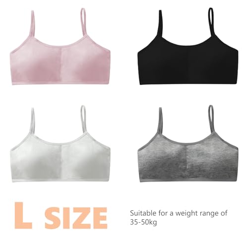 - 【Package Content】The package contains 4 pieces of girls' sports bras, the size is one size. girls bras 12-15 years has 4 colors to choose from, namely white, black, grey and pink. Provide you with more choices.