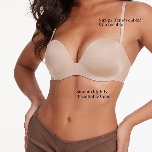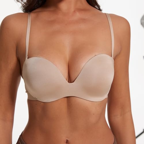 seagallery Womens Low Back Halter Bra Plunge Balconette Backless Bra with Multiway Convertible Straps Tan