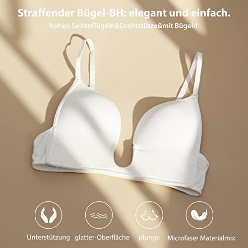 SEAGETTINO Deep U-shaped plunge bra, push-up bra, without underwire, multiway backless bra for backless dress, White, 36D