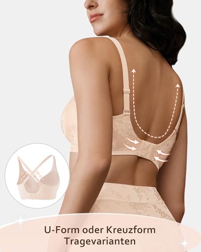 SHARICCA Bras for Women Seamless Full Coverage Push Up Deep V Jacquard Soft Bralette with Comfortable Support,Golden,M