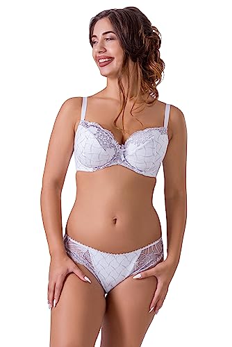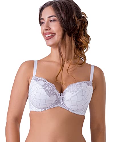 VALEA Luxury Push up Bra Soft Bra Lace Adjustable Straps Collection Gaja (as8, Cup_Band, d, 30) White/Grey
