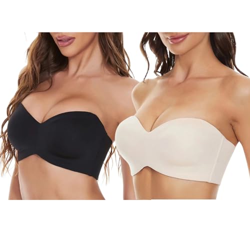 VNDUIFH 2PCSNomorthan Strapless Bra, Non-Slip Multi-Way Strapless Bra, Full Support Non-Slip Convertible Bandeau Bra (A,40/90D)